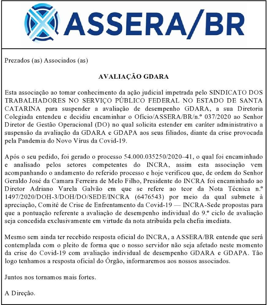 Comunicado Avaliação GDARA