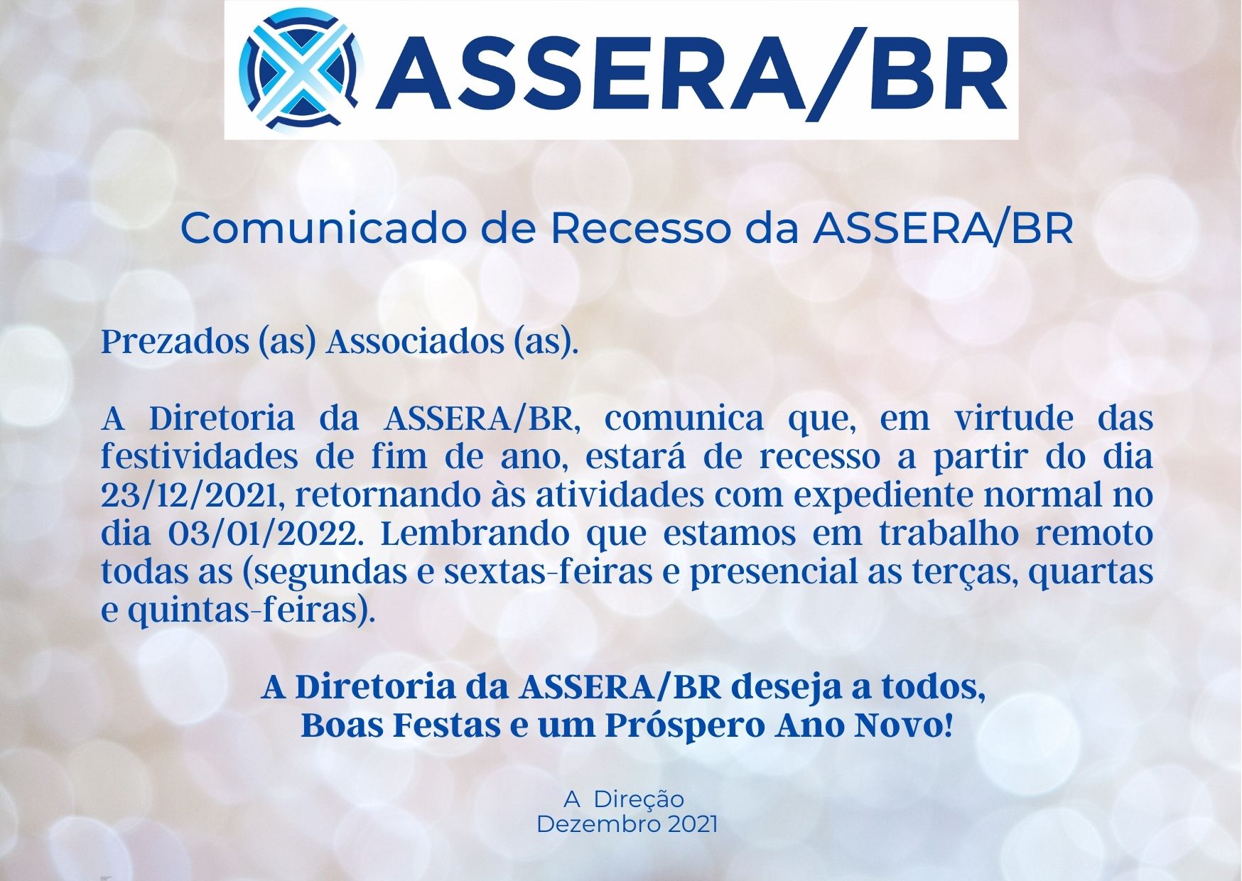 Comunicado de Recesso da ASSERA/BR