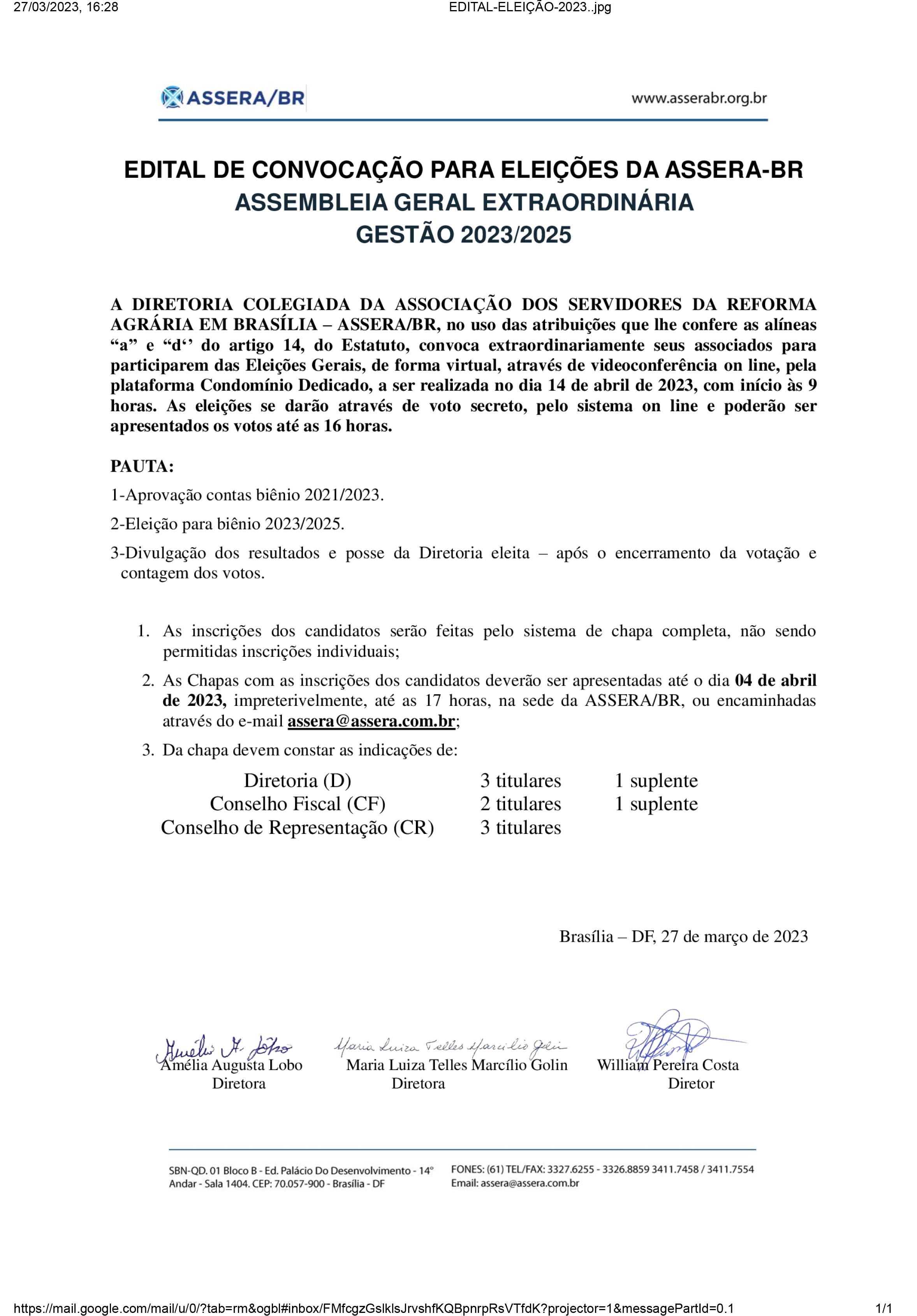 Edital de convocação Eleição Assera