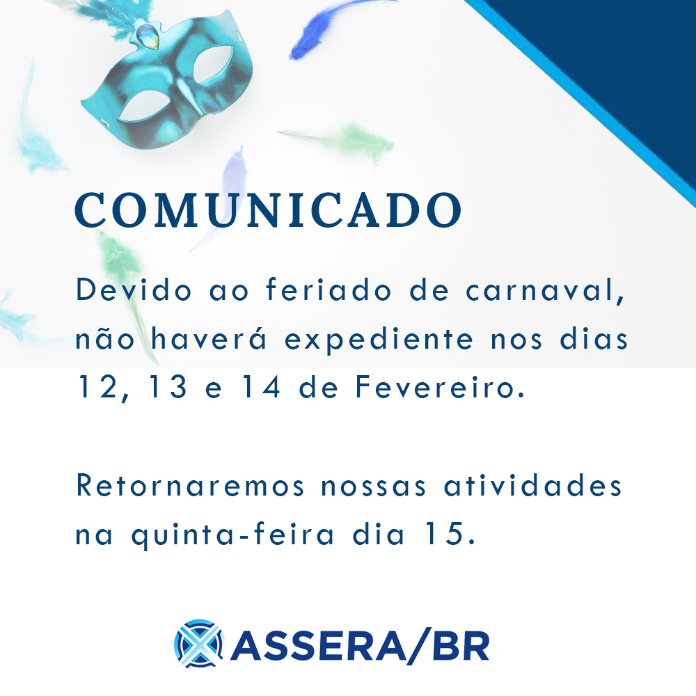 09 Fevereiro 2024 Comunicado Carnaval 2024 Devido ao feriado de carnaval, não haverá expediente nos dias 12, 13 e 14 de Fevereiro. Retornaremos nossas atividades na quinta-feira dia 15.