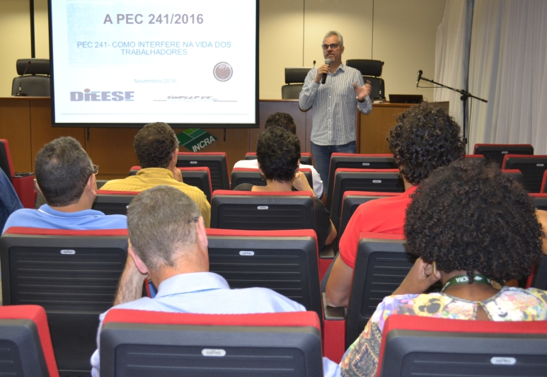 No dia 3 de novembro a Assera/BR e o Sindsep-DF realizaram um debate sobre a PEC 241/55, no auditório do Incra Sede, que fica localizado no 11° andar do Edifício Palácio do Desenvolvimento.